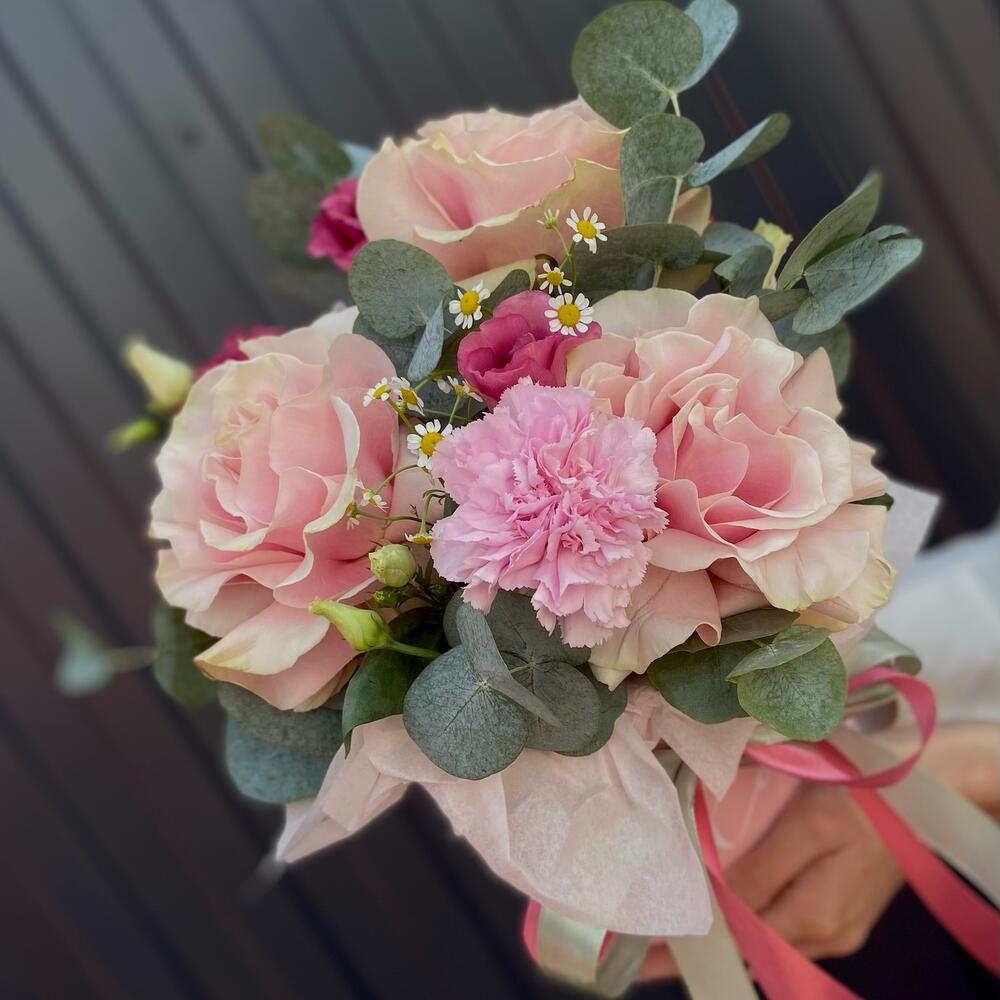 Категории: Гвоздики, Лизиантусы, Розы, Ромашки