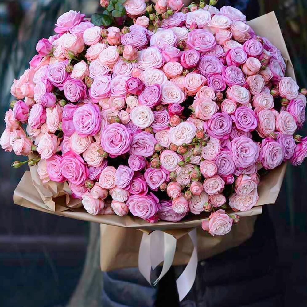 Пионовидная кустовая роза – 101 шт. Упаковка дизайнерская – 3 шт. Открыточка с вашими пожеланиями – 1 шт.