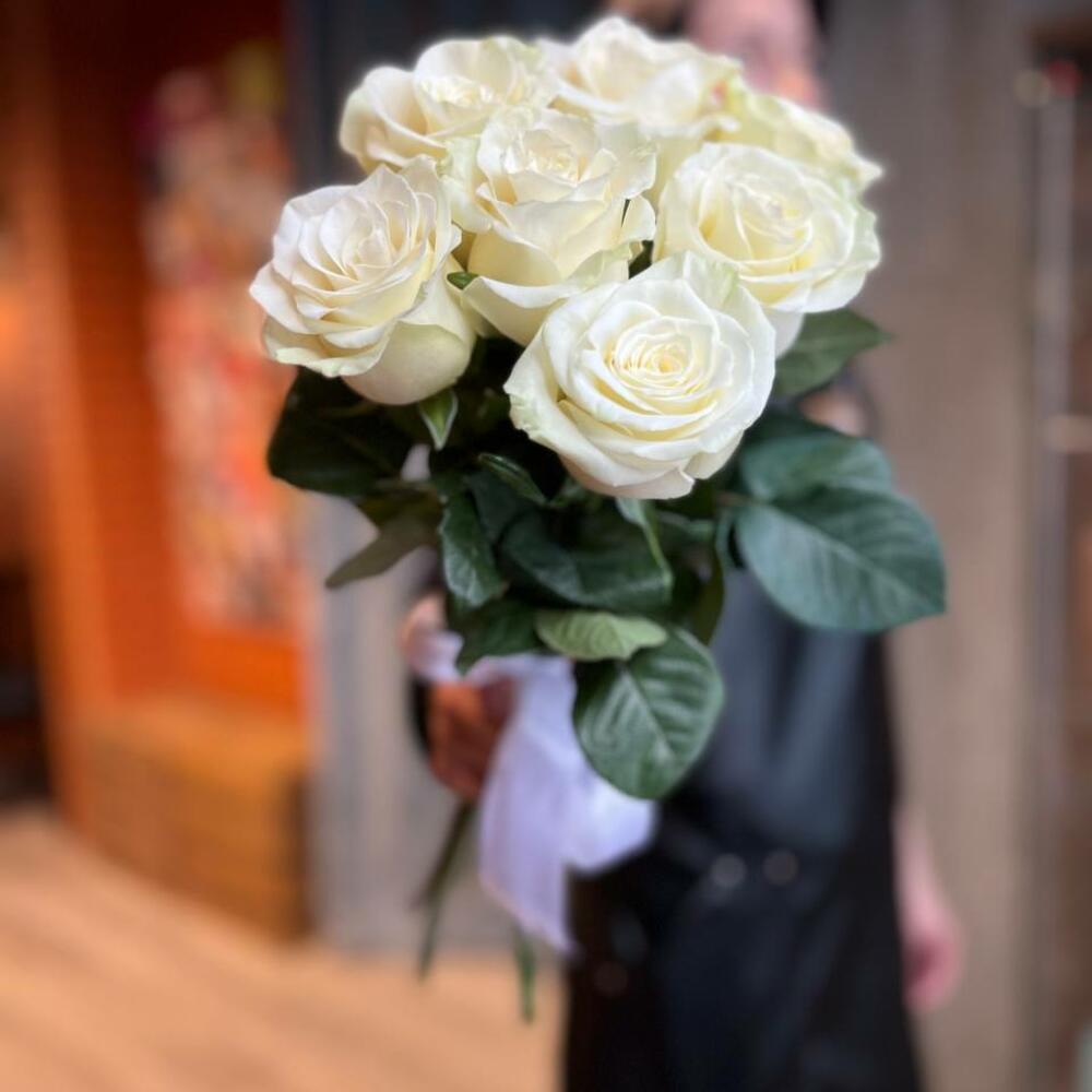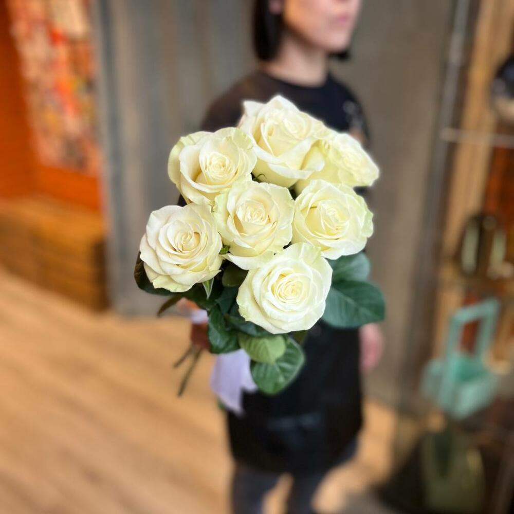 белые розы эквадор 50 см – 7 шт.