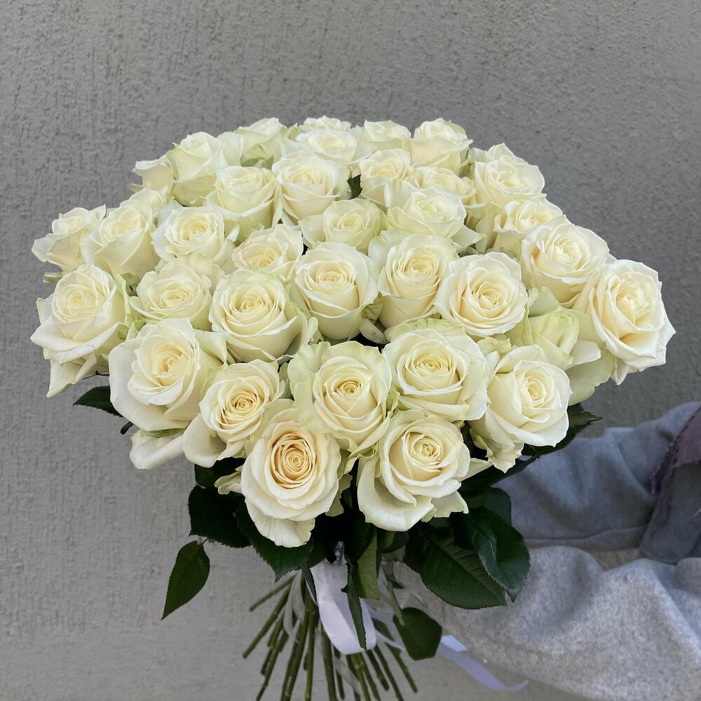 Роза белая – 35 шт. Атласная лента – 1 шт.
