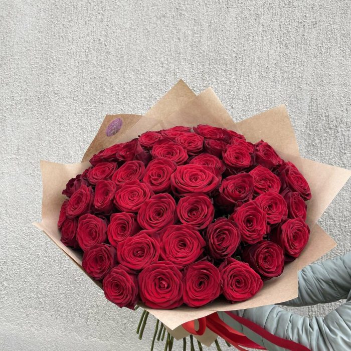 Этот букет из 51 красной розы в крафт бумаге является великолепным проявлением любви и страсти.