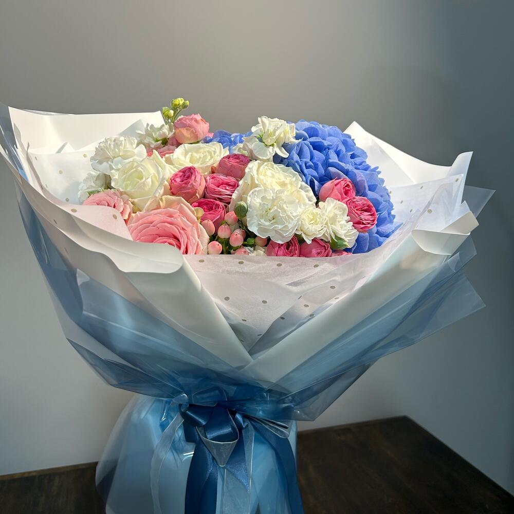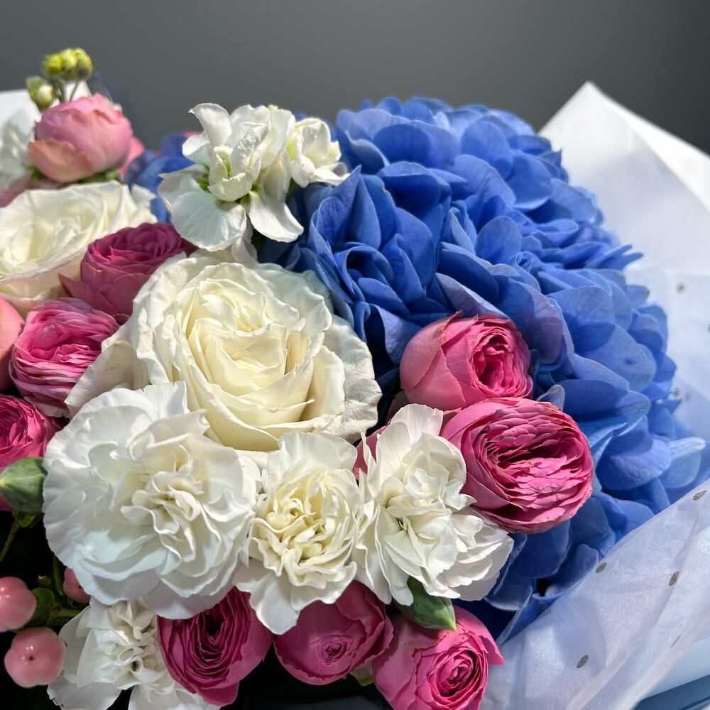 Гвоздики, Пионовидные розы, Розы