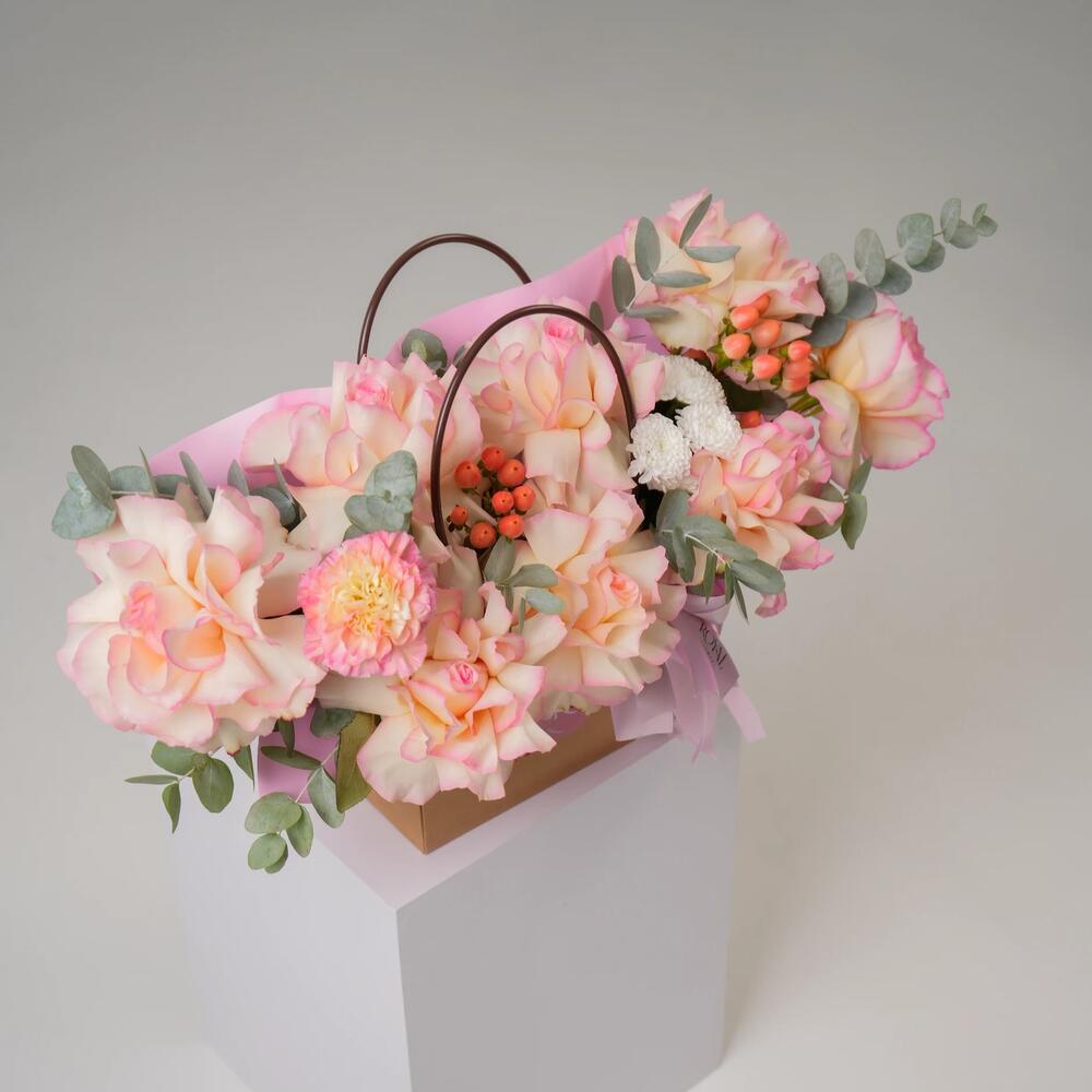 Гвоздики, Лизиантусы, Розы, Тюльпаны