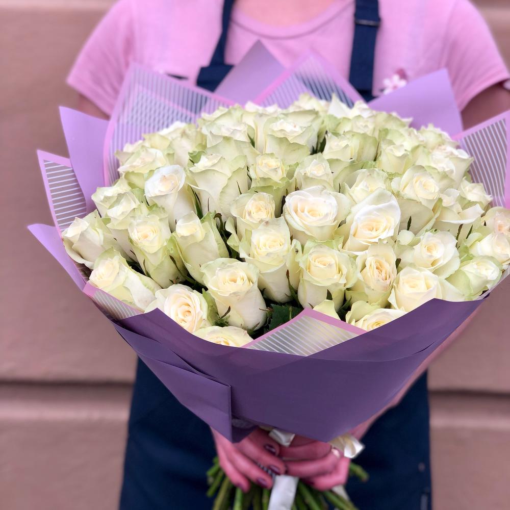 Красивая белая роза 45 см.Отличный выбор букета на день рождения!