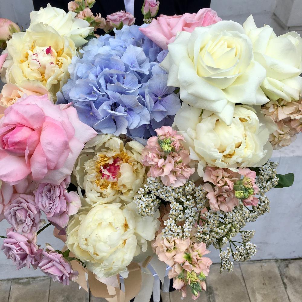 Гвоздики, Кустовые розы, Лизиантусы, Пионовидные розы, Розы