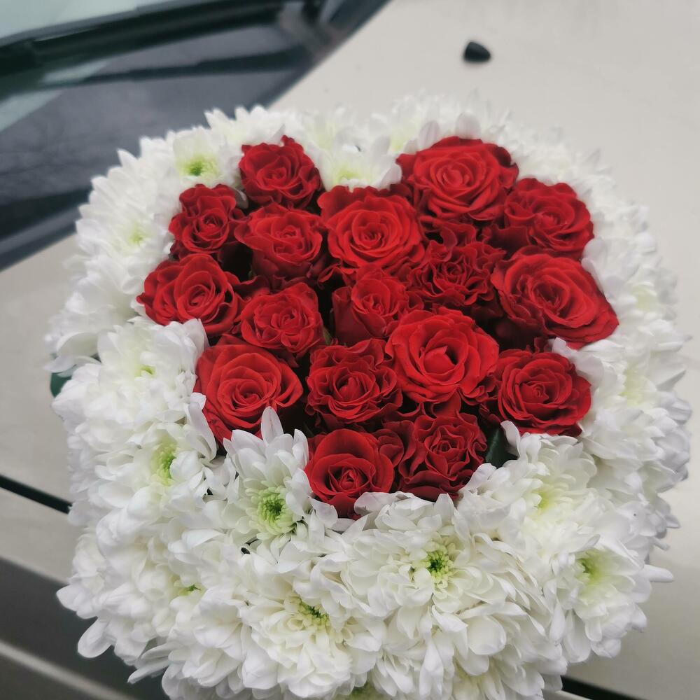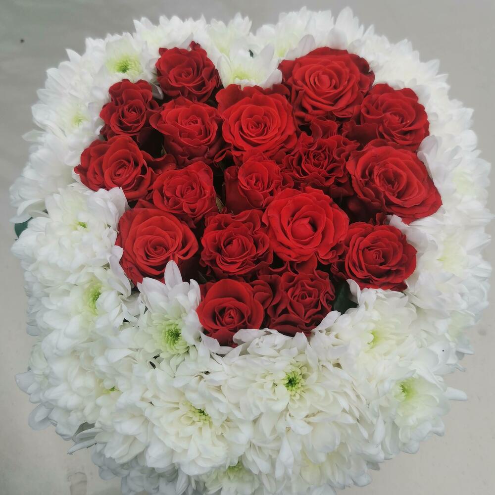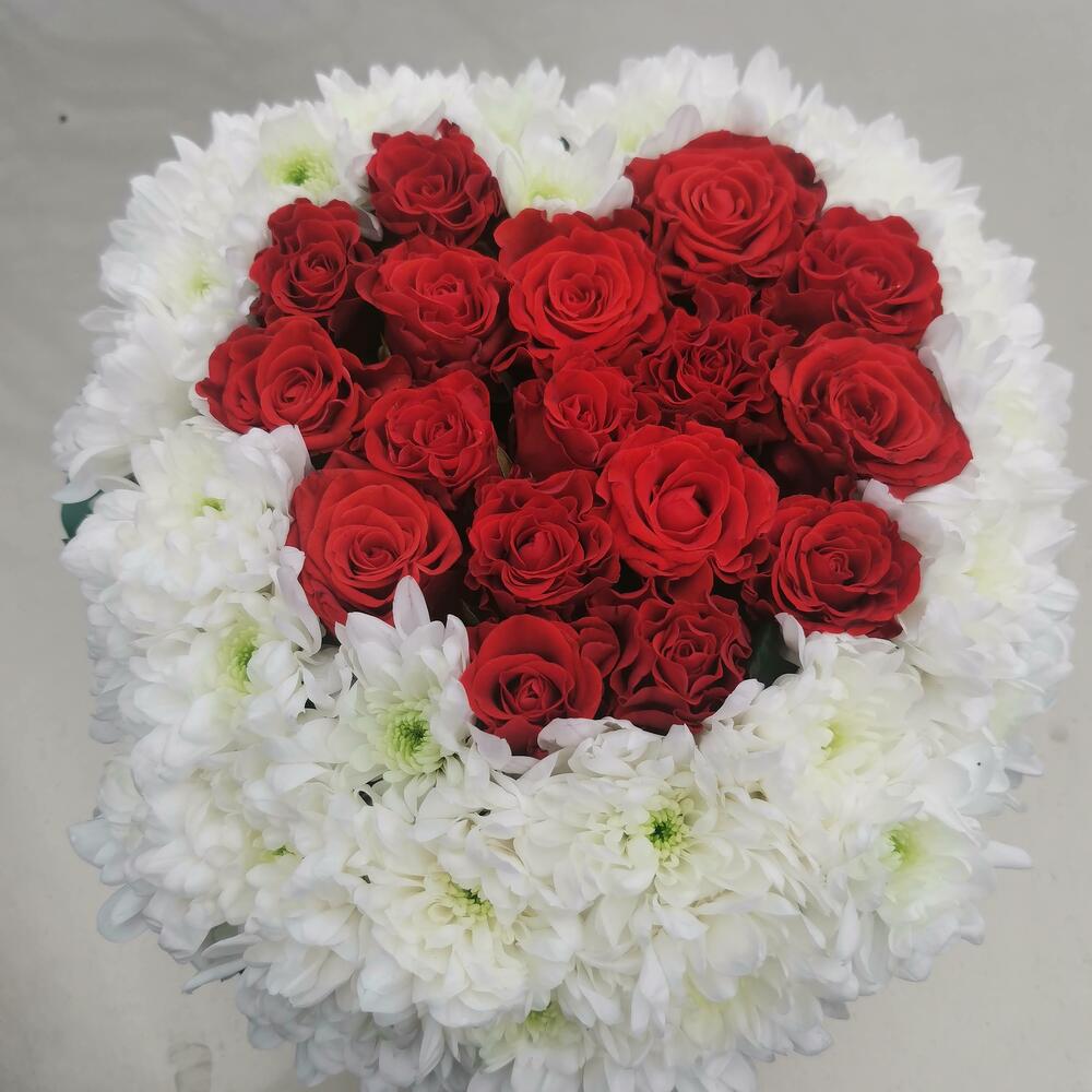 Сердце из роз и хризантем