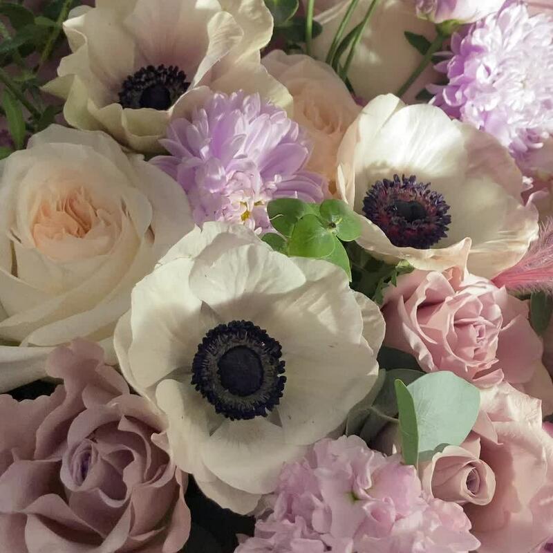 Авторский букет с анемонами, лизиантусом, ковылем, пионовидными розами, эвкалиптом, астрами и маттиолой.Стильное цветочное решение для любого случая.