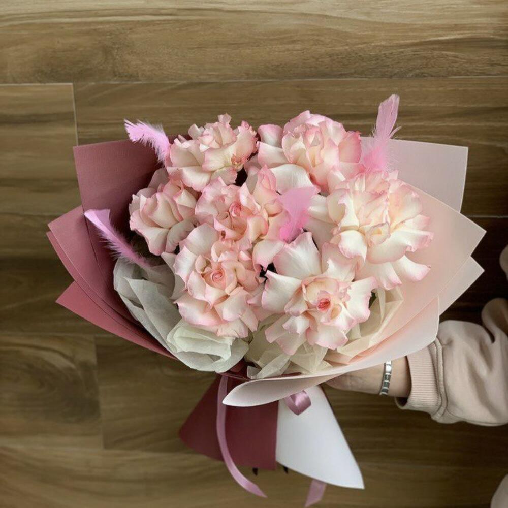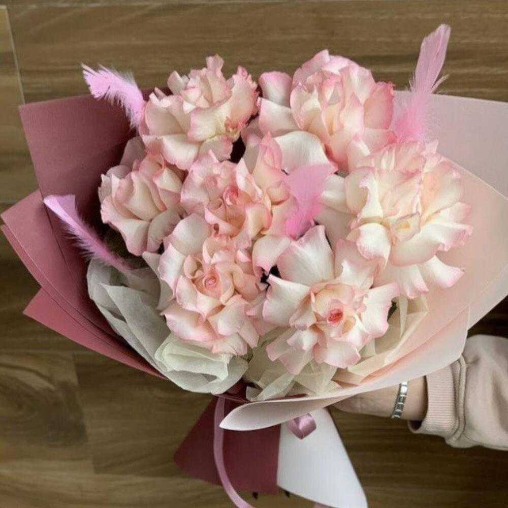 Гвоздики, Кустовые розы, Пионовидные розы, Розы