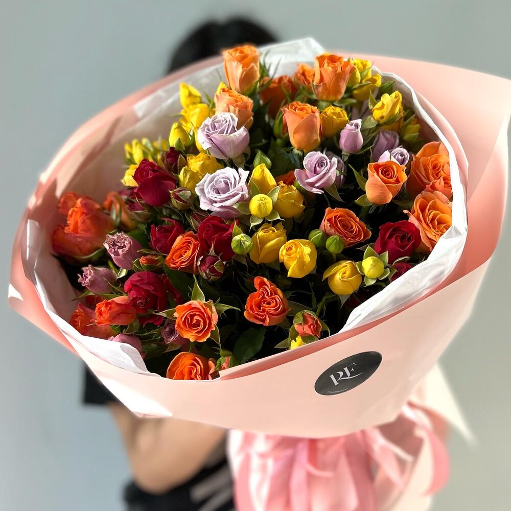 Альстромерии, Гвоздики, Кустовые розы, Лизиантусы, Розы, Хризантемы