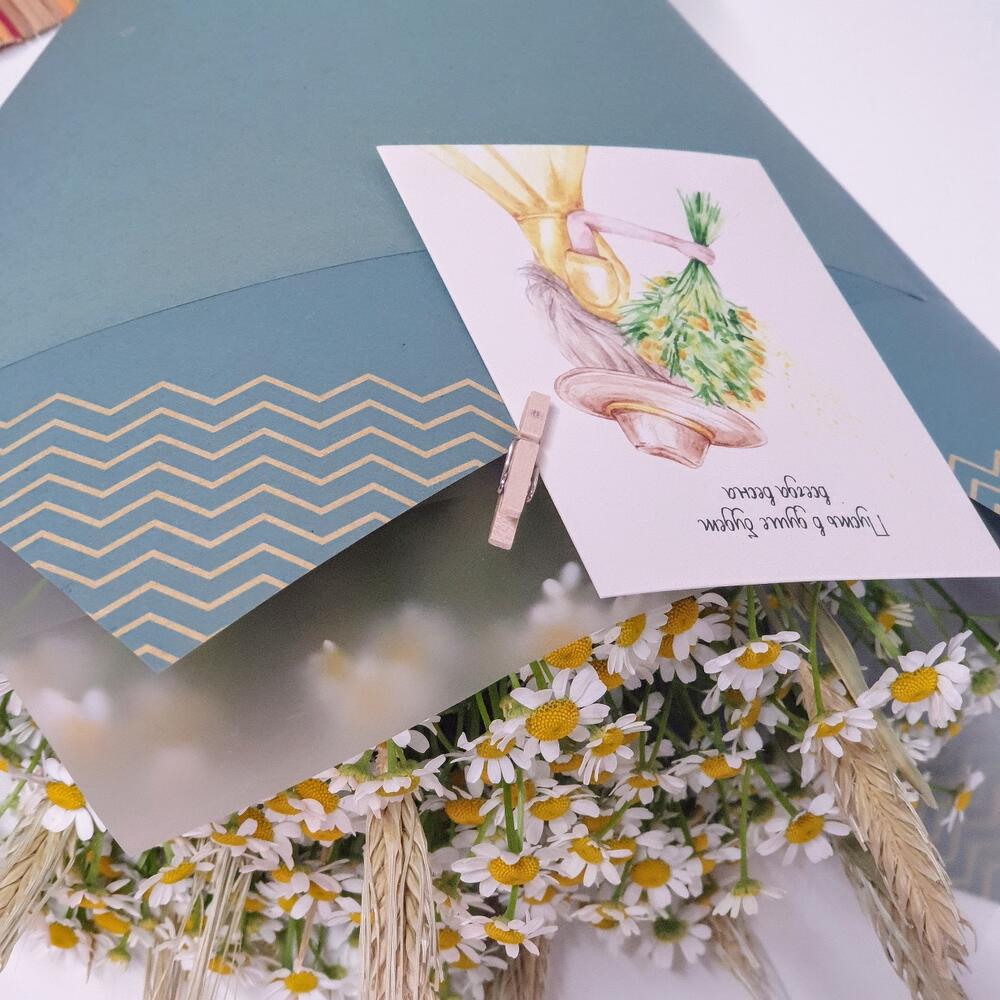 Лента атласная – 1 шт.Ромашка кустовая – 7 шт.Крафт упаковка – 1 шт.Открыточка с вашими пожеланиями – 1 шт.пленка матовая прозрачная – 1 шт.любовь флориста(бесплатно) – 1 шт.колоски пшеницы сухоцвет – 10 шт.