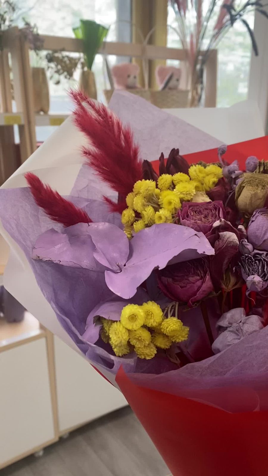 Сухоцветы – 25 шт.Упаковка – 5 шт.Лента атласная – 1 шт.