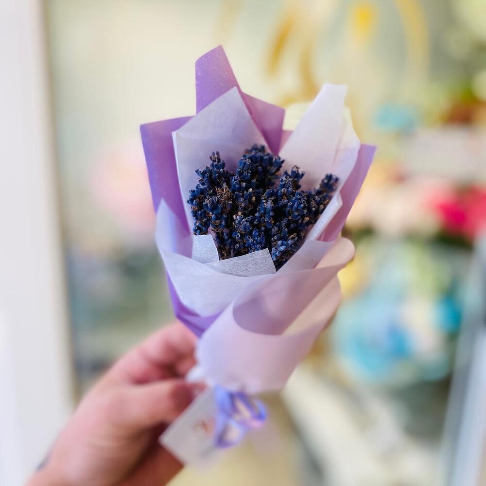 Лаванда (сухоцвет) – 28 шт. оформлення букета в упаковка – 1 шт. Бирочка – 1 шт.