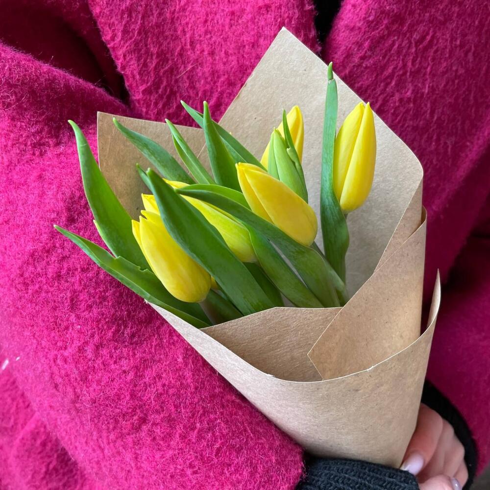 Крафтовая упаковка – 1 шт.Тюльпан желтый – 9 шт.