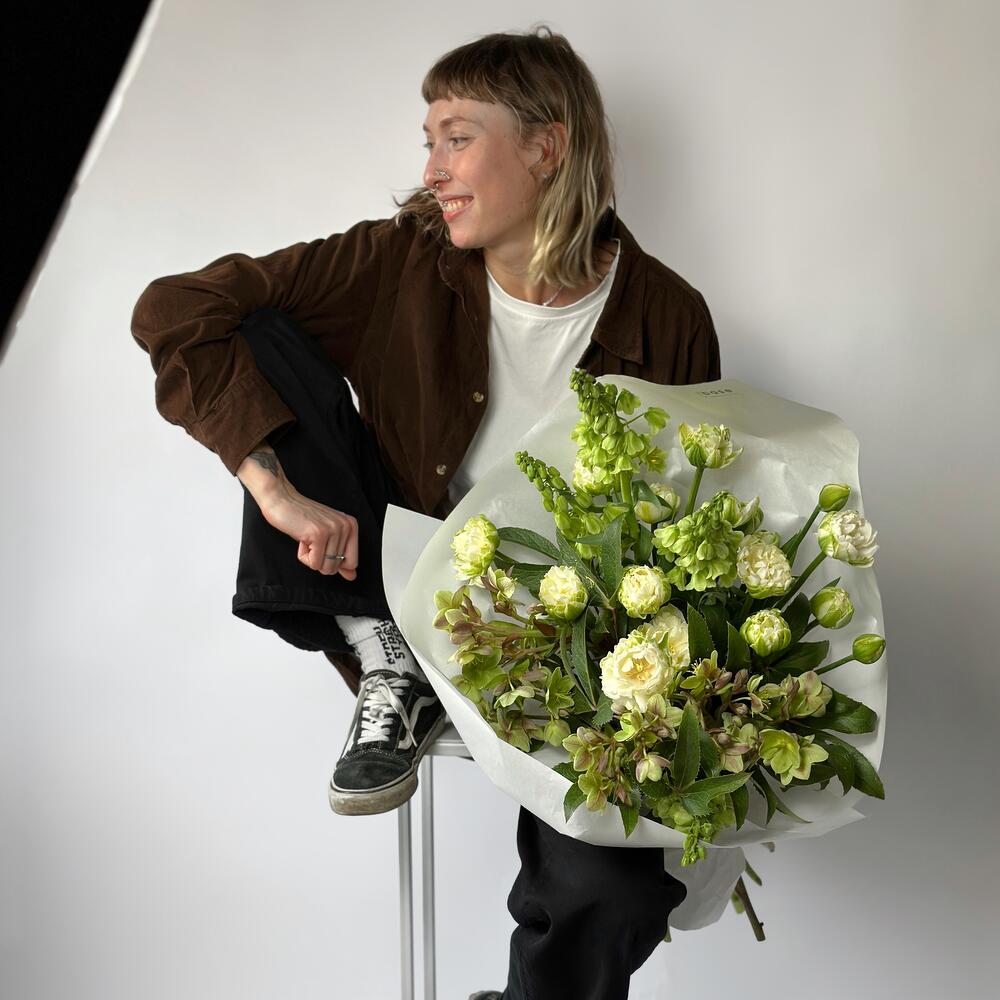 Большой зеленый букет из сезонных цветов